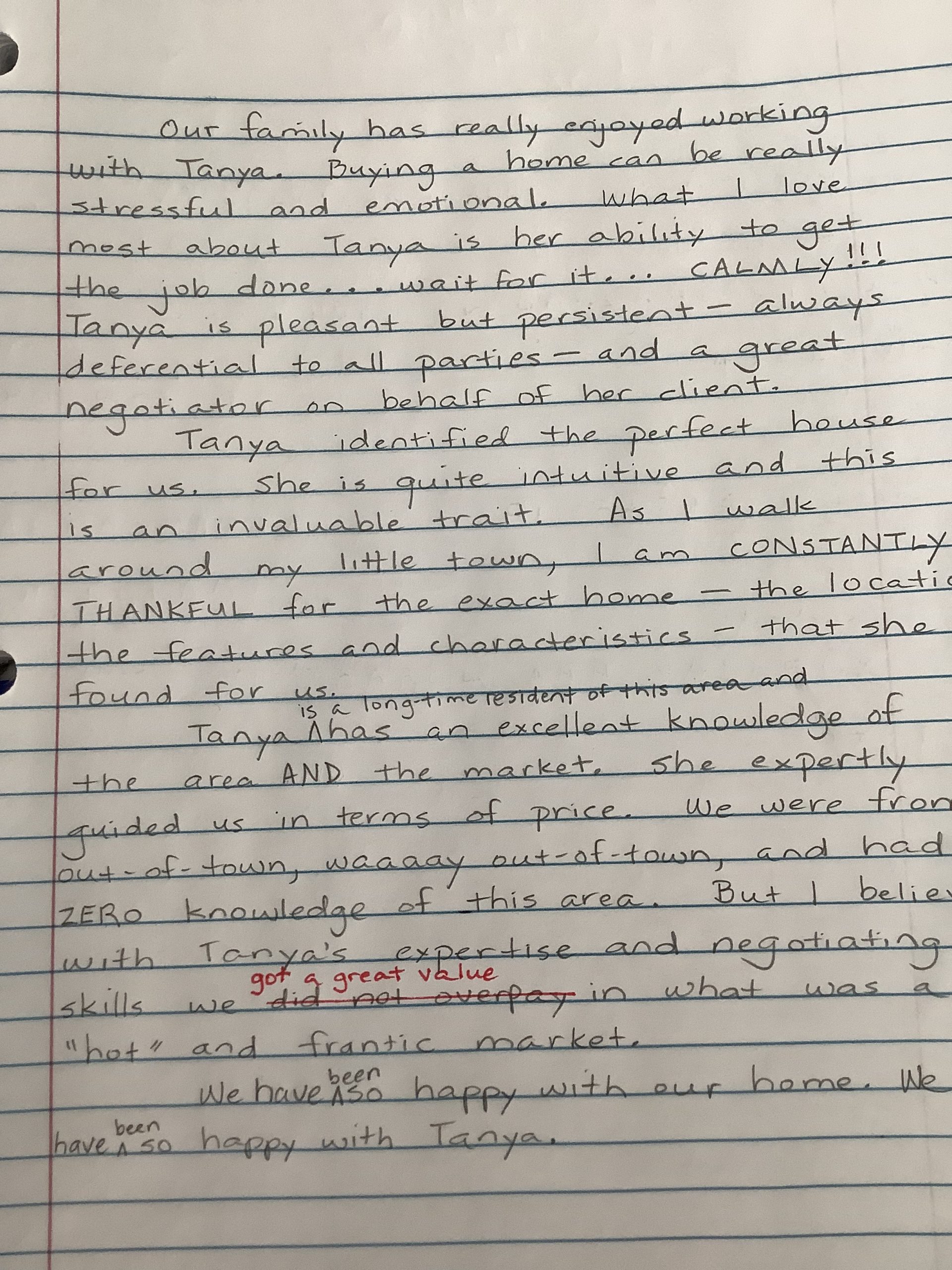 I recommended Tanya to two different friends for their real estate needs. Both parties were extremely pleased with her services."