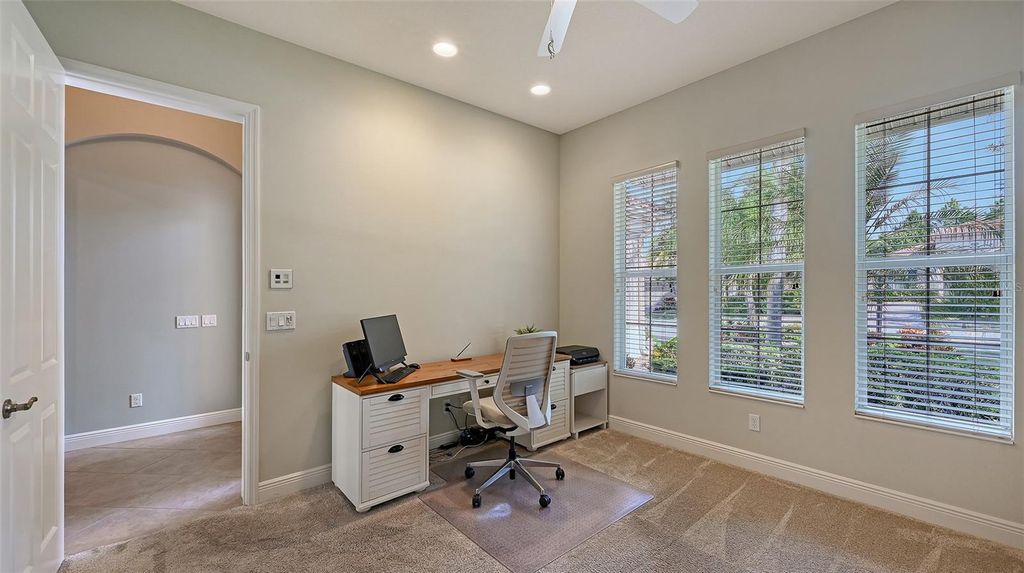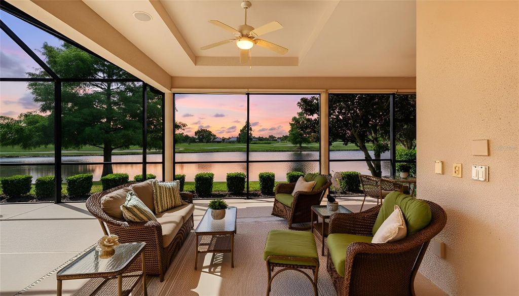 Positioned on a premier south-facing homesite with serene lake and golf course views, this custom-built Green Certified Lee Wetherington residence blends thoughtful design with timeless quality. Offering 3 bedrooms, 2.5 baths, and a spacious 3-car garage, the home’s open floor plan is enhanced by crown moldings, tray ceilings, and a well-appointed kitchen with a large center island, stainless steel appliances, and a generous double door pantry. The primary suite features two separate closets, dual vanities, a walk-in shower, private water closet, and linen closet. Expansive sliders open to an oversized lanai where the remarkable view can be enjoyed throughout the day. In addition to an air-conditioned versatile “Florida basement,” this home offers three additional dedicated storage closets, creating abundant room for seasonal items, sports gear, or household essentials. Built to Green-Certified Gold standards, this home reflects a commitment to environmental design, energy efficiency, and healthier living. Located in the maintenance-free enclave of Secret Harbor, this residence combines luxury, comfort, and convenience in Country Club East, one of Lakewood Ranch’s most sought-after communities. Lakewood Ranch is the number one best-selling multigenerational community in the country, ideally situated near world-class shopping, dining, entertainment at Lakewood Ranch Main Street and University Town Center, downtown Sarasota, I-75, pristine beaches, excellent schools, and top medical facilities. Membership to the Lakewood Ranch Golf and Country Club is optional.