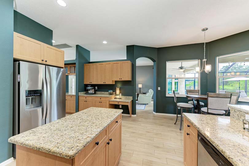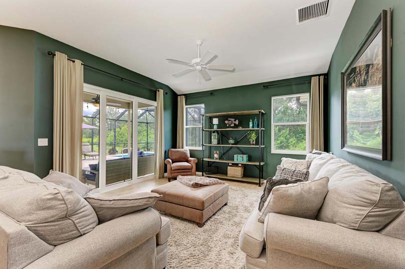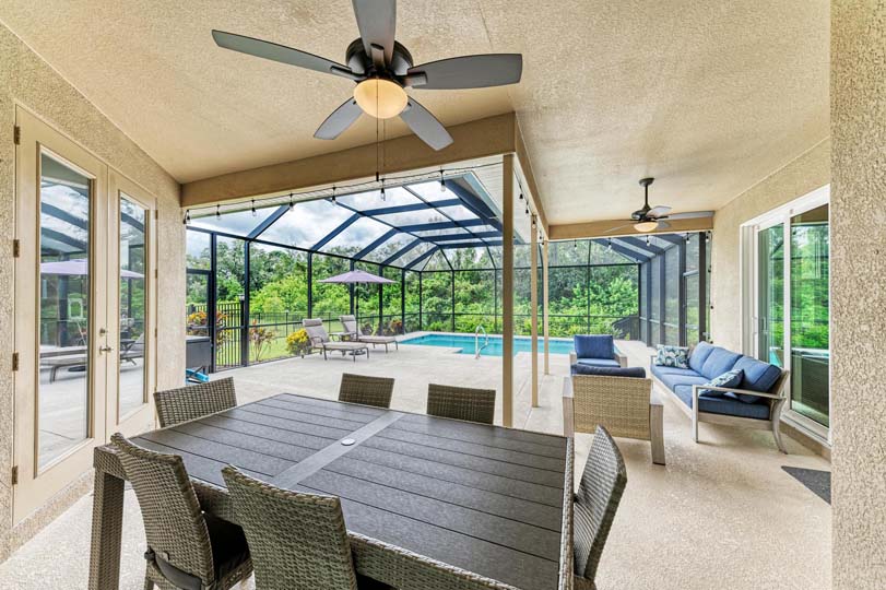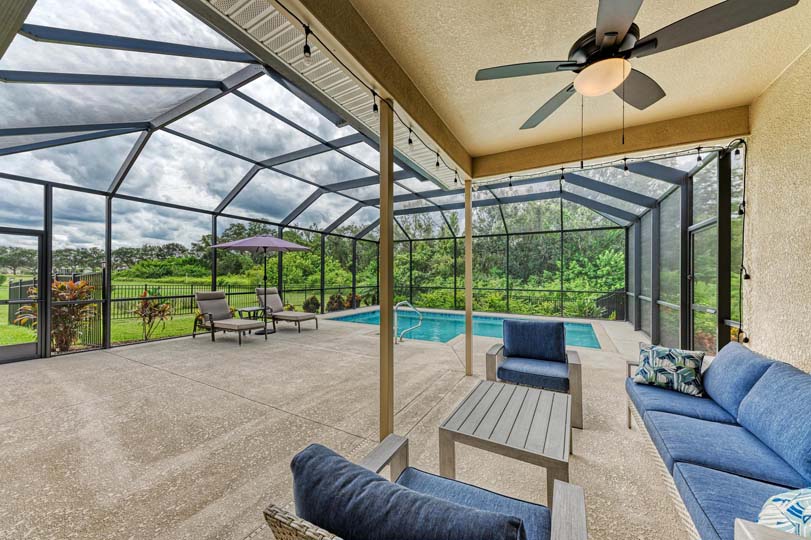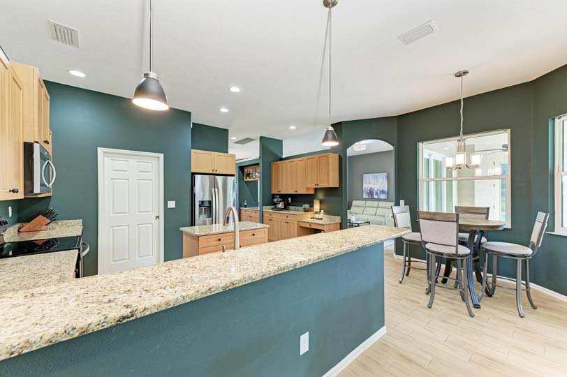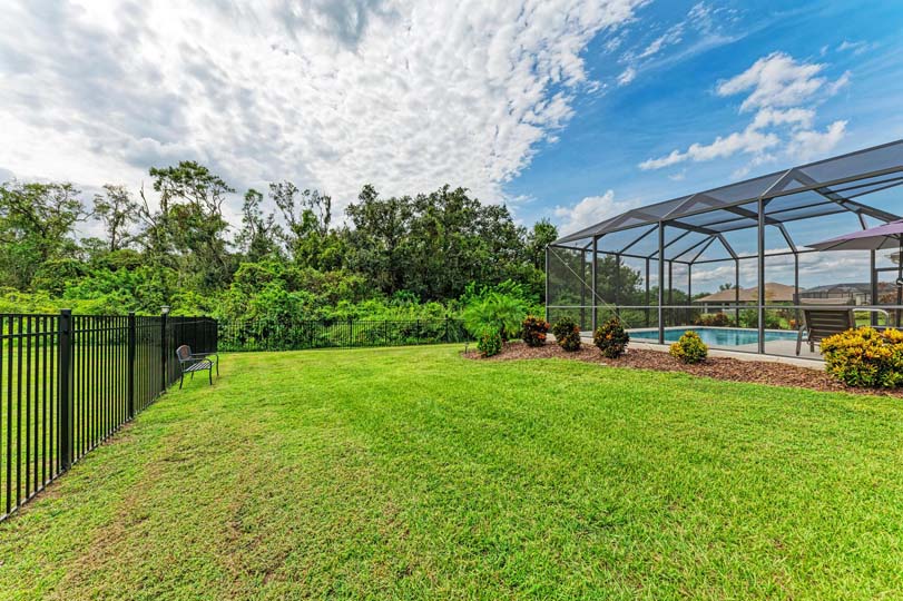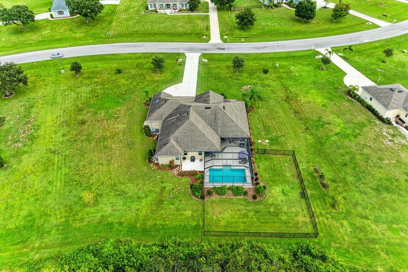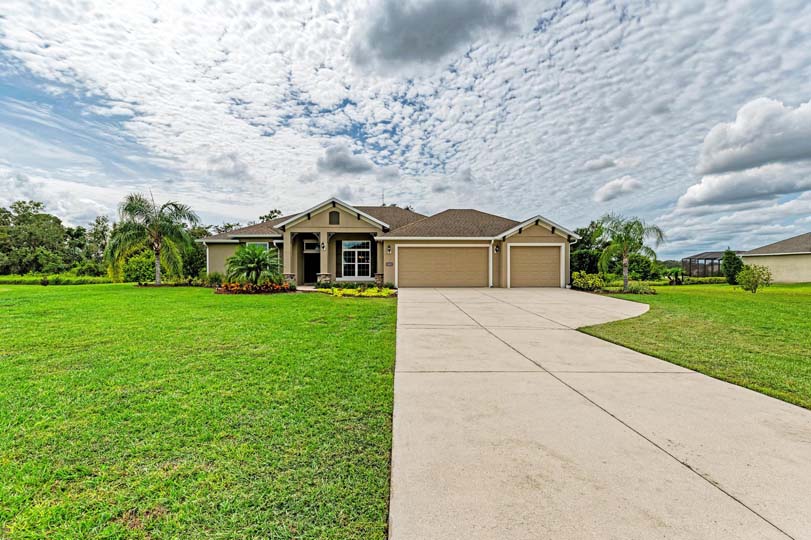 This gorgeous pool home features 3 bedrooms, 2 bathrooms, and a bonus room and sits on 1.1 acres of land with a peaceful view of the preserve. The split floorplan home features 2300 square feet of living space with a living room, family room just off the kitchen, a spacious dining room, and an eat-in kitchen featuring granite counter tops, lots of cabinet space and a large pantry. Perfect for entertaining!! Wake up in your master bedroom overlooking the pool and preserve…paradise. The master bedroom features two walk-in closets and an ensuite bathroom with a soaking tub and walk-in shower. In between the two spacious guest bedrooms is the bonus room which can easily be used as an office or activity room. Enjoy the Florida weather in your caged and heated pool and there is lots of patio space. The huge three car garage features the third stall fully enclosed and air-conditioned with a side garage door for your golf cart and all of your toys. Since the third stall has its own central ac unit, it can easily be used a workspace or activity area. What a bonus! And there is plenty of room in the back of the property to add an outbuilding or detached garage. Bring your pets!! There is a 5-foot aluminum fence, so your pets have room to run. The Foxbrook Community amenities include a playground with pavilion, basketball court and bike paths. The perfect place to call home.