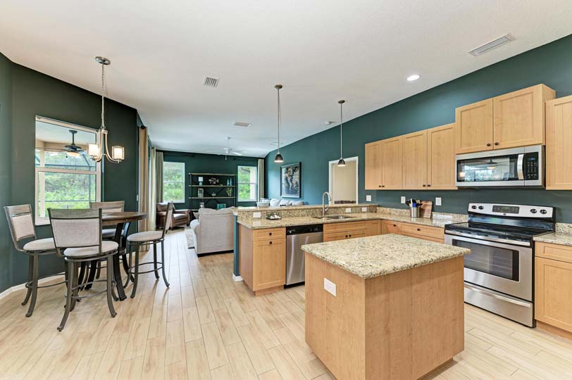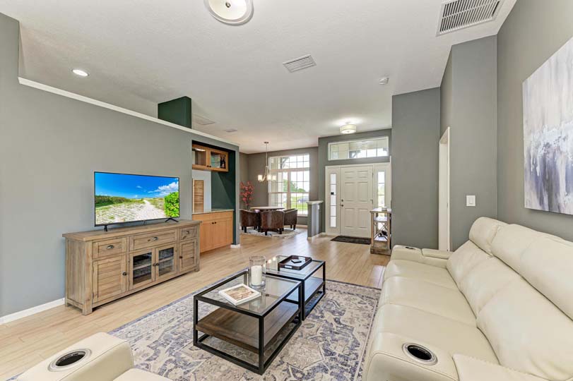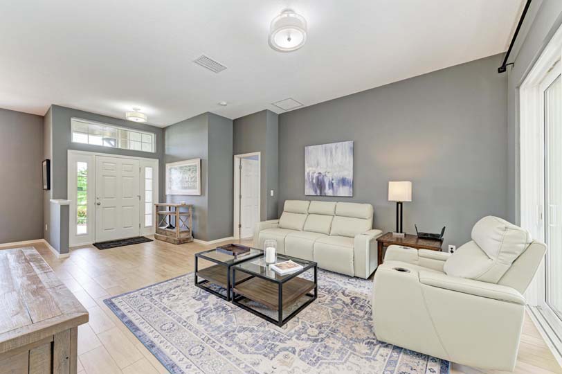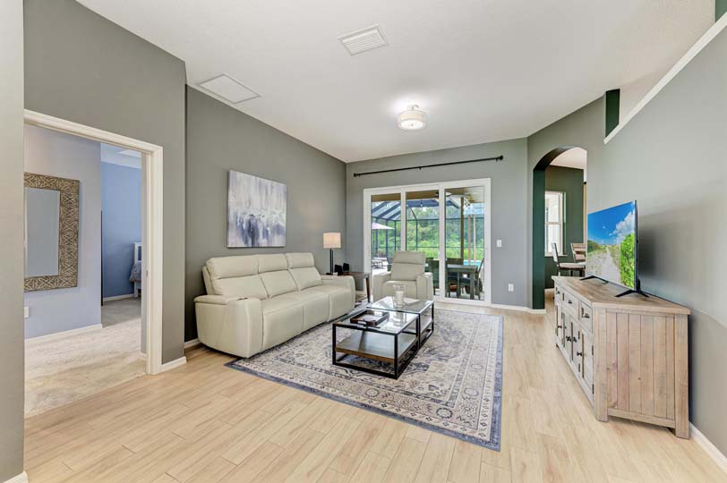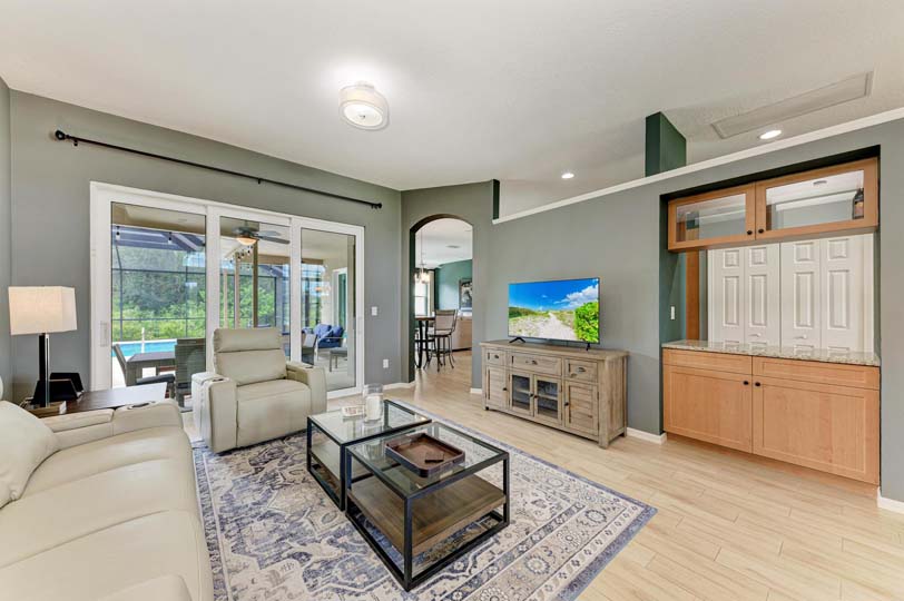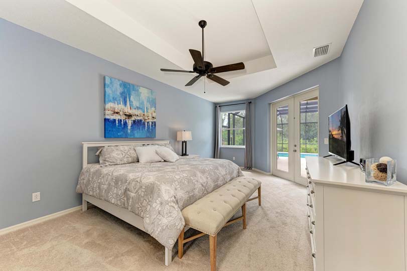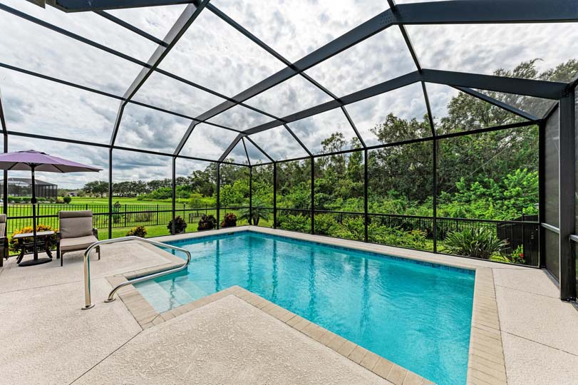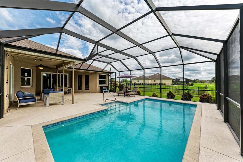 This gorgeous pool home features 3 bedrooms, 2 bathrooms, and a bonus room and sits on 1.1 acres of land with a peaceful view of the preserve. The split floorplan home features 2300 square feet of living space with a living room, family room just off the kitchen, a spacious dining room, and an eat-in kitchen featuring granite counter tops, lots of cabinet space and a large pantry. Perfect for entertaining!! Wake up in your master bedroom overlooking the pool and preserve…paradise. The master bedroom features two walk-in closets and an ensuite bathroom with a soaking tub and walk-in shower. In between the two spacious guest bedrooms is the bonus room which can easily be used as an office or activity room. Enjoy the Florida weather in your caged and heated pool and there is lots of patio space. The huge three car garage features the third stall fully enclosed and air-conditioned with a side garage door for your golf cart and all of your toys. Since the third stall has its own central ac unit, it can easily be used a workspace or activity area. What a bonus! And there is plenty of room in the back of the property to add an outbuilding or detached garage. Bring your pets!! There is a 5-foot aluminum fence, so your pets have room to run. The Foxbrook Community amenities include a playground with pavilion, basketball court and bike paths. The perfect place to call home.
