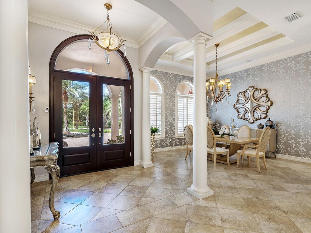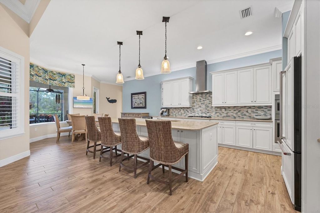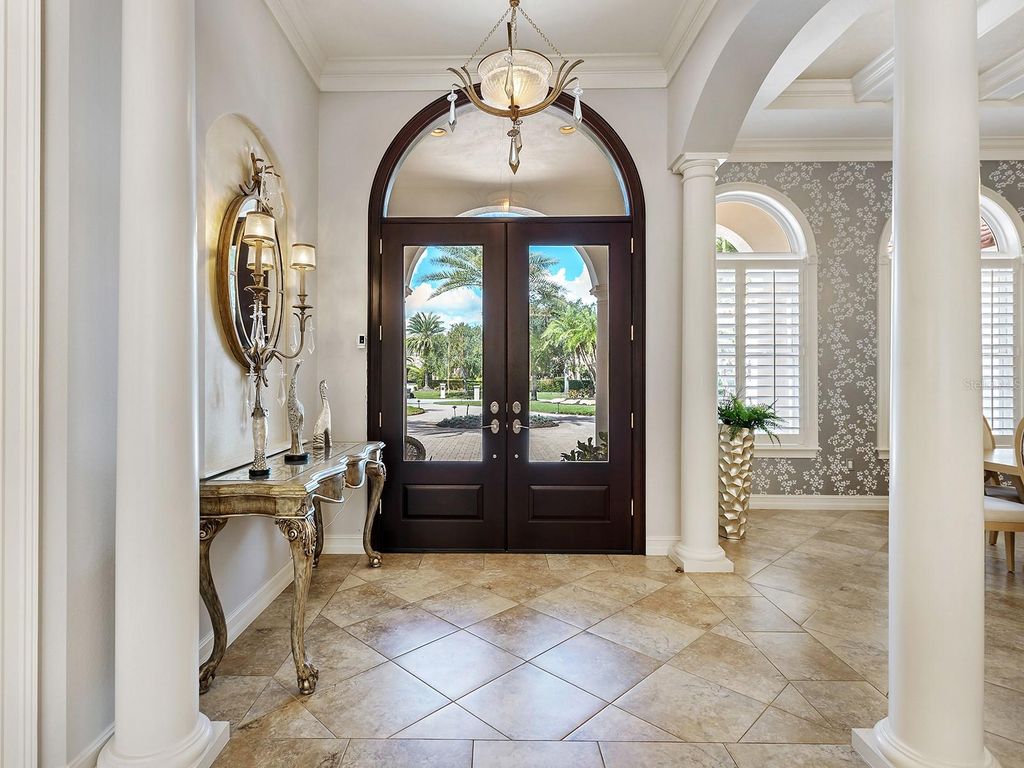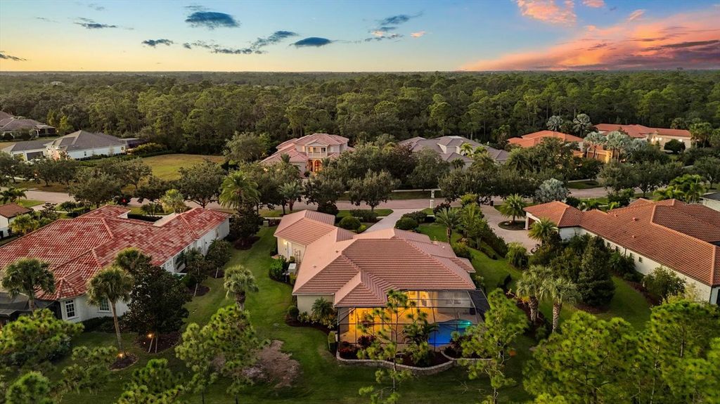 This stunning three-bedroom, three-bath home with a private office offers elegant single-story living designed for comfort, style, and seamless indoor-outdoor enjoyment. The open-concept floor plan welcomes you with custom glass double entry doors, soaring tray ceilings, designer lighting, and expansive living and dining areas that flow effortlessly to the oversized screened lanai. Framed by lush tropical landscaping, this large private lot with tranquil preserve offers an outdoor retreat featuring a heated, saltwater pool, covered entertaining spaces, and a fully equipped outdoor kitchen, ideal for quiet mornings and evening gatherings. Inside, the chef’s kitchen serves as the heart of the home, showcasing custom cabinetry, quartz countertops, spacious island, large pantry, premium stainless steel appliances and a breakfast nook with aquarium window that allows a view to the lanai. The adjoining great room and dining area are filled with natural light, creating an inviting atmosphere for entertaining or relaxing. The primary suite offers a serene escape with lanai access, dual walk-in closets, and a spa-inspired bath featuring dual vanities, and an oversized walk-in shower. Two additional guest suites each include private baths, ensuring comfort and privacy for family and visitors. Additional features include a whole house generator, impact glass, elegant crown molding, upgraded fixtures, immaculate landscaping and an oversized 3.5-car garage with ample additional storage space. In the exclusive gated community of The Concession, this home offers a lifestyle defined by luxury and tranquility. Residents enjoy access to one of Florida’s prestigious golf destinations, a Jack Nicklaus Signature course co-designed by Tony Jacklin, along with winding nature trails, refined dining at The Concession Golf Club, and a setting known for privacy, elegance and natural beauty, just minutes from Lakewood Ranch and Sarasota’s finest beaches.