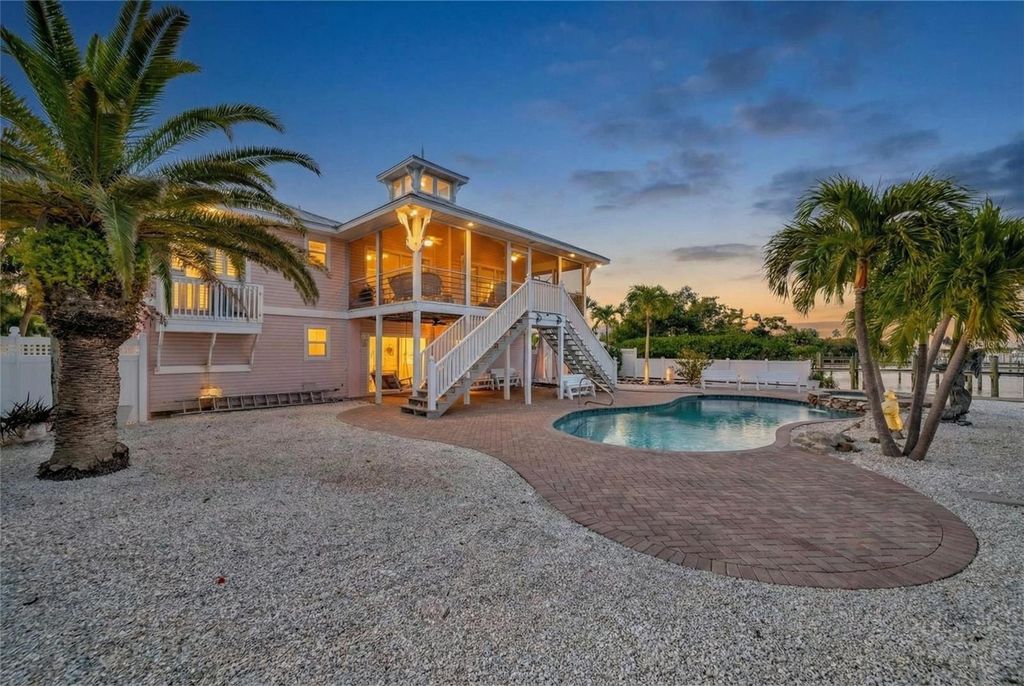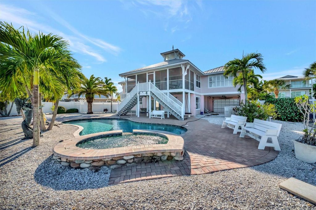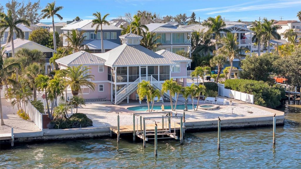 Rare opportunity to own a premier waterfront home offering unbeatable views of Sarasota Bay, boating access, and income potential. Situated on more than a quarter acre and just three blocks from the pristine Gulf beaches, this elevated, one-owner residence delivers the ultimate Florida lifestyle. From the moment you arrive, you’re greeted by sweeping, unobstructed bay views that set the tone for coastal luxury living. This 3-bedroom, 2-bath home features a highly sought-after split-bedroom floor plan, a spacious kitchen designed for entertaining, and space already in place for a future elevator. The expansive screened-in patio showcases breathtaking water views and seamlessly extends the living space outdoors. Step down to your private pool and spa overlooking the bay—an ideal setting for relaxing, hosting guests, and enjoying unforgettable sunsets as boats pass by. Calling all boaters! Enjoy the private dock and lift with direct access to Sarasota Bay and open water, perfect for cruising, fishing, or island hopping. Elevated construction provides peace of mind, while the two-car garage offers ample room for vehicles and water toys. A roof replaced in 2017 adds confidence and long-term value. Zoned for short-term rentals, this property stands out as a strong investment opportunity, luxury vacation home, or full-time waterfront residence. Homes with this combination of panoramic bay views, private boating access, generous lot size, rental flexibility, and walkable beach proximity are truly rare—don’t miss the chance to own your own piece of paradise. Be sure to take a virtual tour through our Matterport platform.