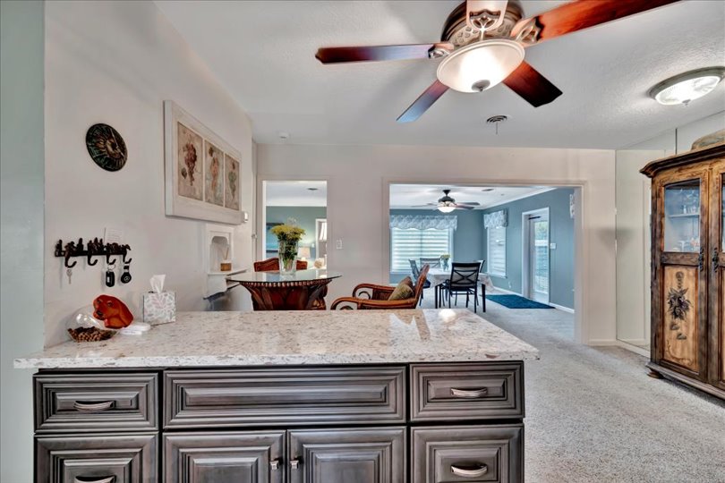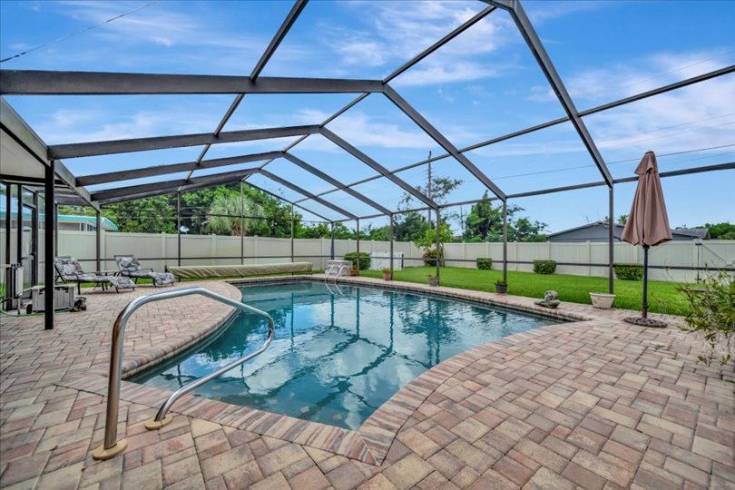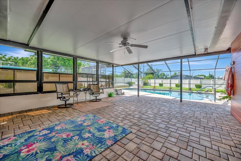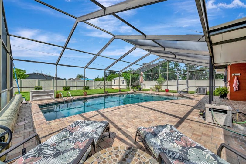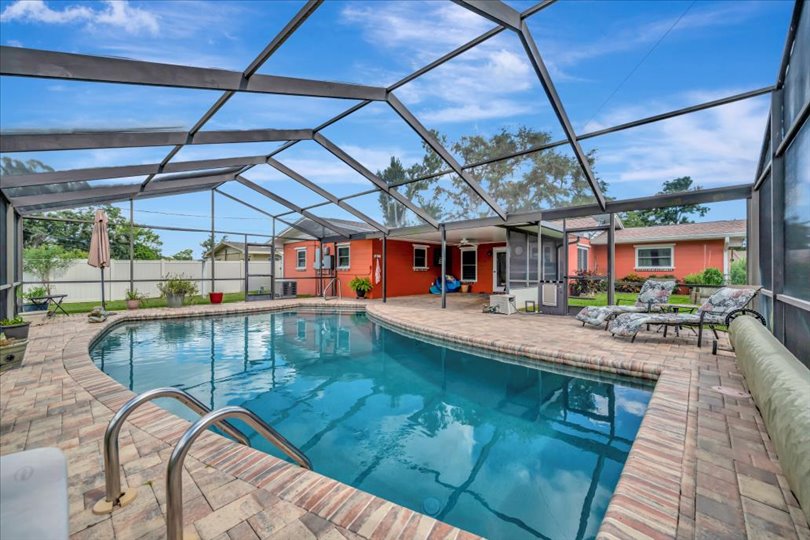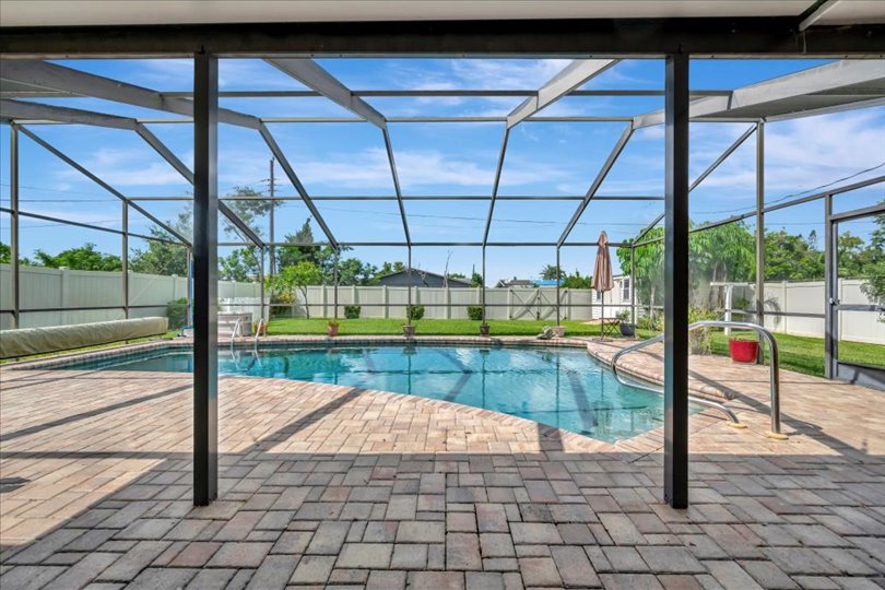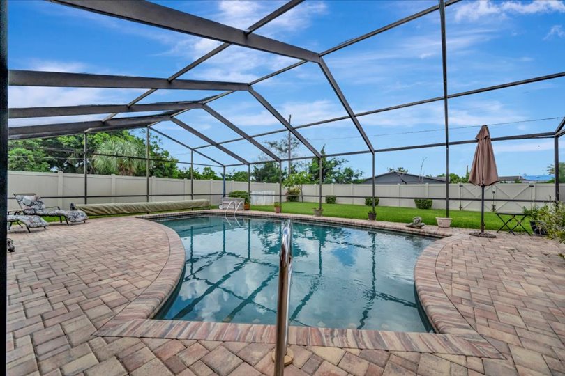 Enjoy true Florida living in this GORGEOUS 3-bedroom, 2-bathroom home situated on over a quarter-acre with countless upgrades inside and out. This home has been updated for both comfort and peace of mind, featuring a WHOLE-HOUSE GENERATOR (2024), HURRICANE SHUTTERS, NEWER ROOF (2022), A/C (2024), ENERGY-EFFICIENT WINDOWS (2019), and NEW PAVERS (2019). Step inside to discover the updated gourmet kitchen (2019), complete with modern finishes, granite countertops, sleek cabinetry, opening seamlessly to the formal dining room…great for entertaining! The split floor plan offers three spacious bedrooms providing privacy and comfort for family and guests. Relax year-round by the heated, caged-in pool with an updated pool pump (2018), and enjoy the HUGE paver patio… truly a fabulous retreat! Surrounded by lush landscaping, this property also features a garden, shed for extra storage, and an irrigation system supplied by a private well to keep everything green year-round. With lots of built in cabinets, the oversized 2-car garage offers tons of extra storage. Close to shopping, restaurants and the pristine beaches of Anna Maria Island. This is the perfect place to call home.