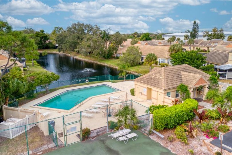 Welcome to this charming 3-bedroom, 2-bathroom one-story villa in Lakebridge South, ideally located just half a mile from IMG Academy and a short 12-mile drive to the pristine sandy beaches of Anna Maria Island. This inviting residence offers comfort, convenience, and coastal living all in one. Step inside to discover cathedral ceilings that create a bright, open ambiance throughout the main living areas. The eat-in kitchen provides the perfect space for casual dining, while the full-size washer and dryer add everyday practicality. Enjoy Florida living year-round in the enclosed, air-conditioned lanai, perfect for relaxing or entertaining. The private fenced backyard offers peaceful outdoor space for pets, gardening, or quiet evenings at home. Additional features include a 1-car garage for secure parking and storage. Located in a beautifully maintained community offering two sparkling pools, tennis courts, and a welcoming clubhouse, you’ll have plenty of opportunities for recreation and social connection. Whether you’re seeking a primary residence or seasonal retreat, this villa delivers exceptional value in a highly desirable location. One small pet is welcome. Don’t miss your chance to make this beautiful villa your own piece of paradise!