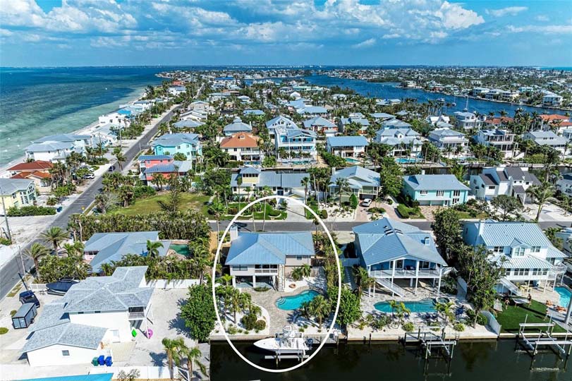You have to see this home to appreciate the efficient layout and spacious living spaces. This property comes turnkey furnished, making it a seamless transition for the fortunate new owners. Meticulously maintained and never rented, the home exudes a sense of care and pride. For those considering short-term rentals, this residence presents an attractive opportunity. Featuring three bedrooms, including two master suites, and three bathrooms, the open floor plan enhances the spacious and airy ambiance, creating an inviting atmosphere for residents and guests alike. Nestled along a serene saltwater canal, this home caters to boating and fishing enthusiasts with a 12,000lb boat lift and a fish cleaning station. This deepwater canal has no fixed bridges to get to open water, both sailboats and power boats are welcome. The covered back porch overlooks the canal, providing a tranquil setting for relaxation and entertainment. Immerse yourself in the refreshing saltwater pool. The pool is heated with an electric heat pump and comes with a pool sweep and fitted cover. Inside, the residence boasts high-end finishes, including granite countertops, crown molding, Hunter Douglas window dressing and hardwood floors throughout, with tile accents in the bathrooms. Practical features of this elevated home include a new metal roof and a completely enclosed lower level that boasts a 2-car garage, ample storage space under the entire home on a generous lot with 75′ on the canal, ensuring privacy and room for outdoor activities. A short seven-block stroll or bike ride takes you to the beautiful Gulf beaches that Anna Maria Island is renowned for. And Tampa Bay water access is literally half a block away, across South Bay Blvd. Again, turnkey furnished and ready to move in. And as an extra bonus a meticulously maintained 2006 Shearwater Z2400 power boat is included. Don’t miss this opportunity!!!