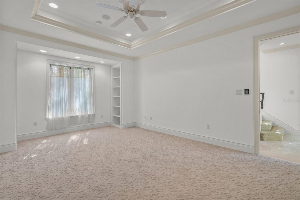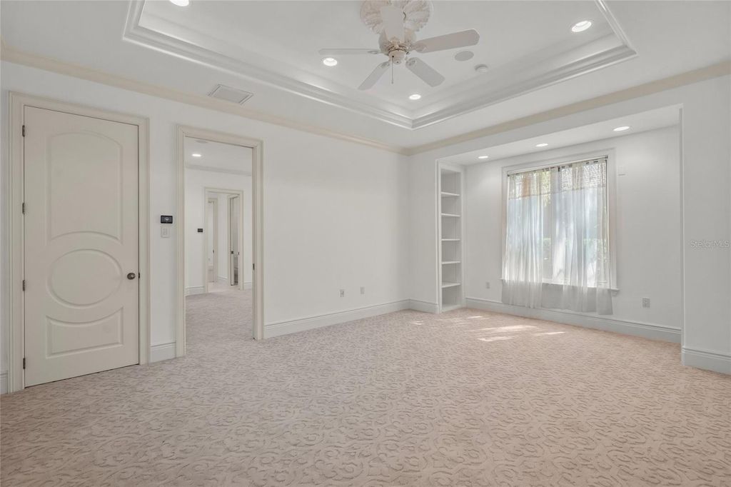 Experience the luxury in a breathtaking enclave in University Park, a home perfectly perched in a serene setting at the end of a quiet cul-de-sac. This residence boasts stunning lake views, proximity to the Clubhouse, and direct views of the 9th and 18th fairway. Every aspect of this home was meticulously crafted: generous proportions, superior construction, exquisite selection of materials, cutting-edge appliances, & advanced automation systems. As you step through grand double doors of wrought iron and glass, through a majestic foyer with soaring ceilings leading into a 17X14 music room, and the formal living room, with inviting vistas of the expansive lanai and sparkling pool and spa. Culinary artists will revel in the chef’s dream kitchen, equipped with elite Dacor, Wolf and Subzero appliances. Features include carved wood cabinetry, elegant stone counters, a prep sink, wine cooler, and a spacious pantry that is both functional and elegant. Indulge in the serene luxury of the primary bedroom suite, showcasing stunning built-ins, a cozy sitting area ideal for indulging in a captivating book or gazing at the tranquil lake, complemented by two spacious walk-in closets and an elegant dressing area. The stunning en-suite bathroom is drenched in natural light. An open/split floor plan provides three additional bedrooms, each featuring ample closet space, 2 additional bathrooms, and an office/study complete with built-ins and picturesque views of the 9th fairway, all conveniently located on the first level. Venture to the second floor for a media room, game room, an additional bedroom and another full bathroom, providing a perfect retreat for both relaxation and entertainment. Sliding glass doors seamlessly connect the living room, primary bedroom, great room and study to the fabulous outdoor area: a shimmering pool and spa, a covered area with outdoor kitchen and fireplace, with a large area for sunbathing in complete privacy. For convenience, there’s a half bathroom with washer and dryer, plus an outdoor shower to refresh after a delightful swim. A/C is approximately 6 months old. Please note there is a minimum social membership.