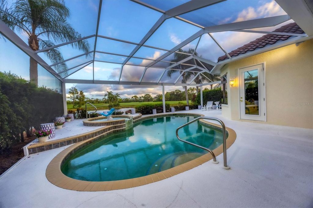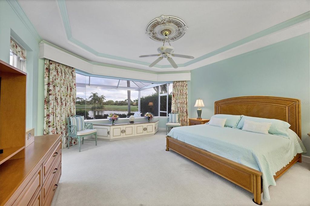 Surrounded by beauty on both sides, this stunning three-bedroom, three-bath residence is positioned on one of the remarkable lots in University Park Country Club, offering expansive, unobstructed views of the lake and golf course. Near a quiet cul-de-sac within this prestigious gated community, the home captivates from the moment you arrive with its timeless architectural detail, nearly 3,000 square feet of elegant living space, custom window treatments, designer lighting and numerous recent updates, including a new roof, new gutters and new panoramic lanai screen, all completed in September 2025 with transferable warranties. Through the custom new French Provincial-style double entry doors, you’re greeted by soaring ceilings, abundant natural light, and an open layout that flows effortlessly for entertaining and everyday living. The formal living and dining rooms feature a space to entertain, refined crown molding and architectural details that enhance the home’s sophisticated design. The inviting great room offers custom built-ins, a gas fireplace, designer lighting and walls of sliding glass doors that open to the lanai, framing postcard-perfect views of the glistening lake and manicured fairways beyond. The chef’s kitchen is equally impressive, showcasing custom cabinetry, a center island, stone countertops, tile backsplash, stainless steel appliances and a cozy breakfast nook where every meal is accompanied by a spectacular view. The oversized primary suite is a serene retreat with over 10 feet of picture windows capturing the panoramic golf course vistas. A tray ceiling, dual walk-in closets and a spa-inspired bath with dual vanities, soaking tub, walk-in shower and sparkling chandelier complete this luxurious space. Two additional bedrooms ensure comfort and privacy for guests. Go outside to your private oasis, an expansive screened lanai featuring a new panoramic screen designed to showcase the breathtaking, uninterrupted views. Enjoy multiple spaces for outdoor living, including a covered entertaining area, a relaxing sunbathing terrace, an outdoor kitchen and a sparkling pool and spa accented by a custom dolphin fountain. As the sun dips below the horizon, the sky ignites in brilliant color, its reflection dancing across the lake and fairway for a magical view. Offered fully furnished, this home is move-in ready, making it easy to simply come home and embrace the best of Florida living. Within the award-winning University Park Country Club, residents enjoy 27 holes of championship golf, tennis, pickleball, fitness, and fine dining as well as access to a lovely community lap swimming pool in the Notting Hill section of the neighborhood, and all just minutes from world-class shopping at UTC, downtown Sarasota’s cultural attractions and pristine Gulf beaches.