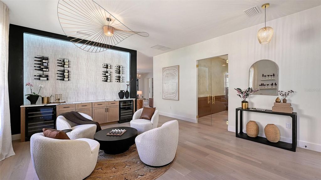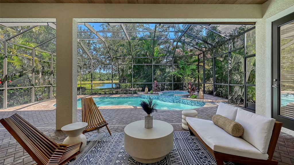 Fully renovated and move-in ready! Set on an oversized homesite and completely transformed with a fresh, contemporary style, this beautifully renovated and furnished 4-bedroom, 3.5-bath home offers nearly 3,200 square feet of light-filled living space in the heart of Lakewood Ranch Country Club. Thoughtfully updated from top to bottom with everything new—roof, A/C, water heater, engineered hardwood flooring, cabinetry, countertops, appliances, lighting, bathrooms, modern wine bar and more—it’s a move-in-ready home where every detail is brand new. Even the pool has been resurfaced and all new pool equipment added. Inside, the reimagined kitchen showcases sleek cabinetry, new appliances, and custom finishes, while the open-concept design flows effortlessly to the lanai and pool area for ideal indoor/outdoor living with hurricane roll-down shades for extra storm protection. Throughout the home designer finishes, custom wall accents, and refined design details elevate each space, blending comfort and sophistication throughout. Set within a gated enclave surrounded by mature trees and tranquil ponds, this residence combines the charm of an established community with the appeal of modern luxury living. Lakewood Ranch is the number one best-selling, multigenerational community in the country located near world-class shopping, dining, entertainment of Lakewood Main Street, University Town Center, Waterside Place, downtown Sarasota and is minutes to I-75, beaches, great schools and medical facilities. Membership to the Lakewood Ranch Golf and Country Club is optional.
