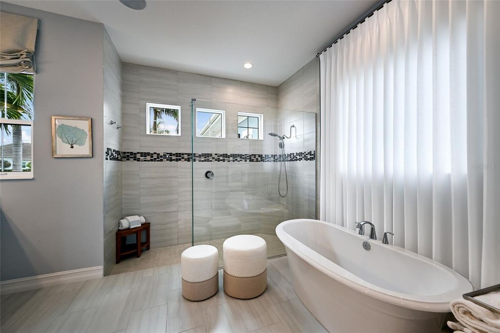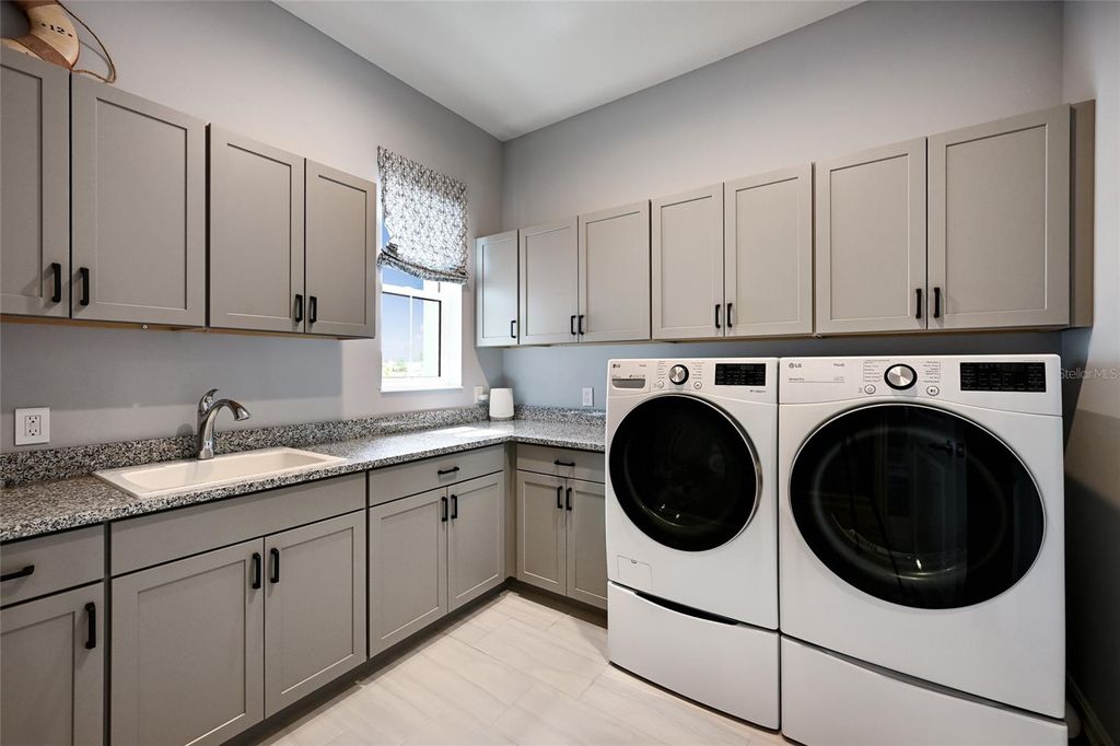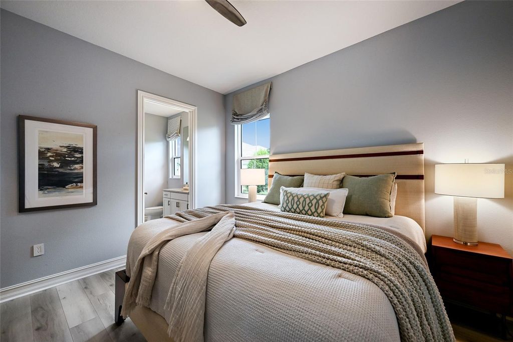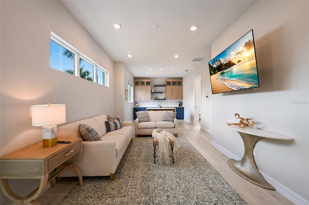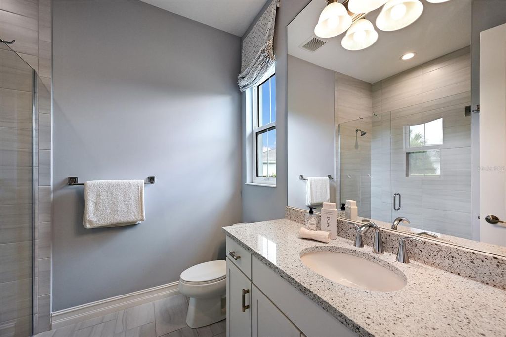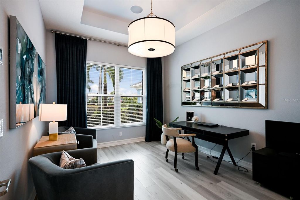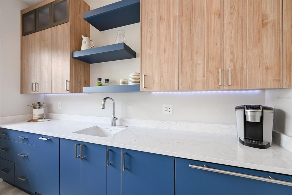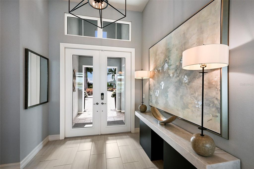 Positioned on one acre inside the exclusive gated community of The Lake Club with breathtaking lakefront westerly views, herein lies an unparalleled opportunity in this 3,734 square foot residence that uniquely offers the recent addition of a magnificent GUEST HOUSE. Added in 2024, the newly built separate entry living quarters offers two bedrooms, two full bathrooms, great room, den and its own kitchenette complete with microwave, refrigerator drawers, freezer and dishwasher. Meanwhile, the main house is a stylishly open one-story plan that exudes thoughtfully planned living spaces, accentuated volume ceilings, skillfully selected finishes, and, of course, all IMPACT windows/doors/sliders. The expansive outdoor retreat elevates the Florida living experience with a panoramic screened lanai, extensive open and under cover spaces, soaring ceilings, full summer kitchen, PebbleTec heated saltwater pool/spa, and an inviting gas fireplace. Ten foot impact disappearing glass sliders seamlessly connect the outdoor oasis to a luxuriantly welcoming great room, dining area and gourmet kitchen crowned with coffered ceiling, accent wall, and designer light fixtures creating a sophisticated open continuity of space. Off the dining room, the gourmet kitchen further accentuates with wood cabinetry, soft-close dove-tail drawers, newly installed quartz counters and backsplash, stainless steel appliances, wine fridge, and walk-in pantry. Relax and unwind in the owner’s quarters positioned on a private wing, offering double tray ceilings, large scale windows, direct lanai access, two oversized walk-in customized closets, and a luxuriously appointed bath with dual station vanity, an oversized shower with designer tile, a large soaking tub, and separate water closet. There are two additional guest suites in the main house, each on a separate wings of the home generous in size with luxury plank vinyl flooring, one offering an ensuite full bath, while the third guest room is just off the home’s pool bath bath. The residence also offers an impressive office behind double-entry doors just off the entry foyer. Other notable highlights of this newly built all-encompassing 5,585 total square foot residence includes a brilliantly finished laundry room with cabinetry and sink, tankless water heater, all impact windows and doors, smarthome automation, and an oversized three car air-conditioned garage with epoxy flooring and storage. This rare offering beckons a lifestyle fulfilled in The Lake Club, where residents enjoy access to a wealth of amenities, including two resort-style heated pools, Grande Clubhouse with fine dining and bar area, a fitness center, spa, tennis courts, pickleball, a playground, dog park, and services of a full-time concierge and activities director.