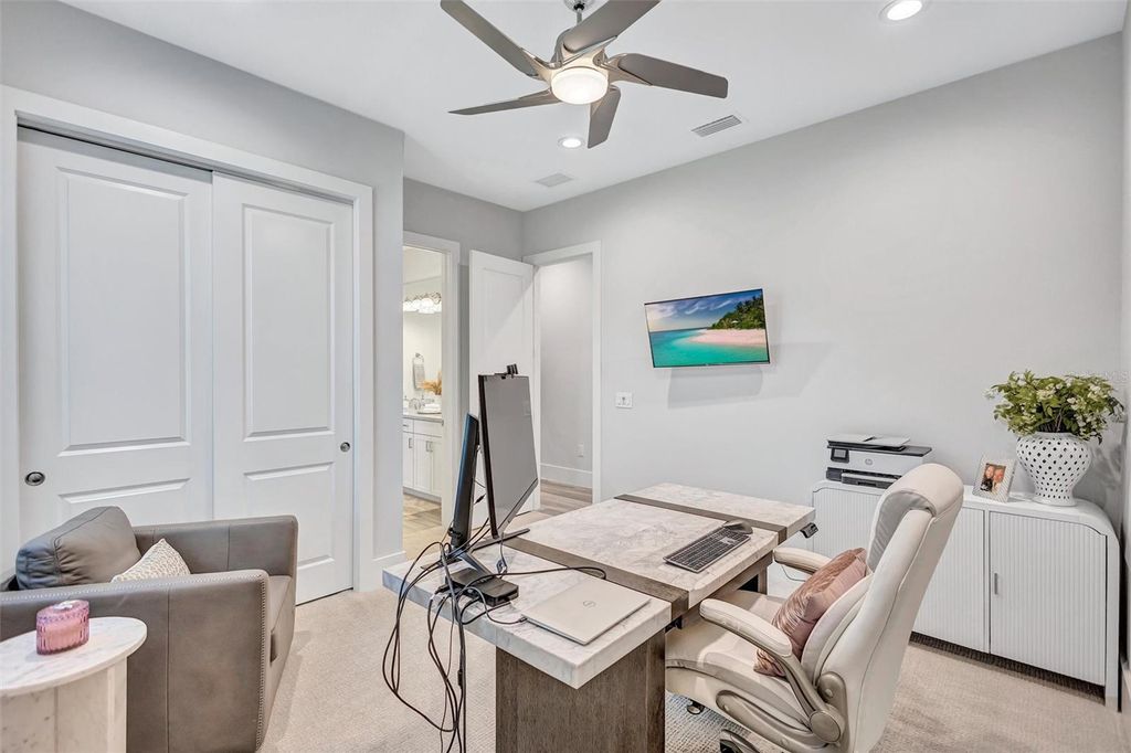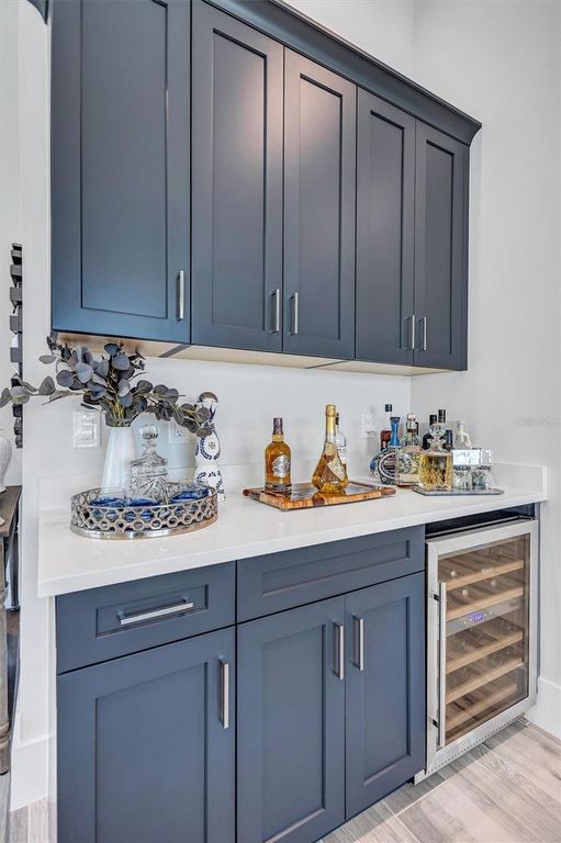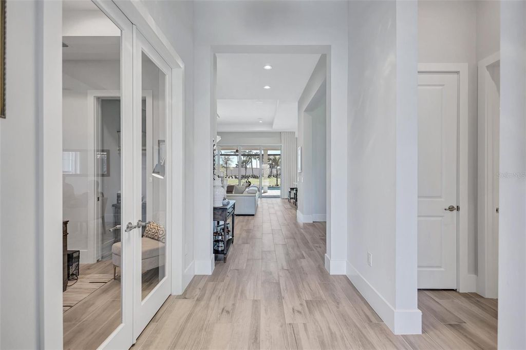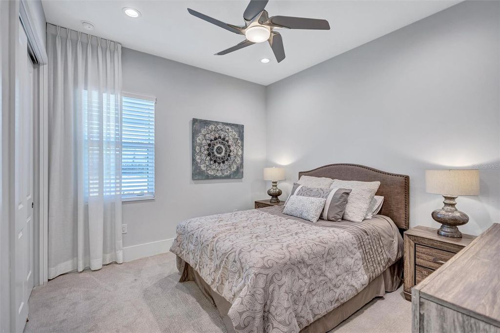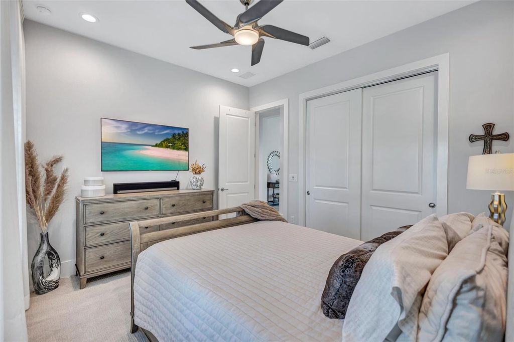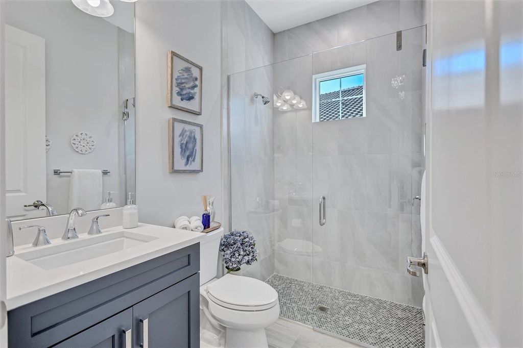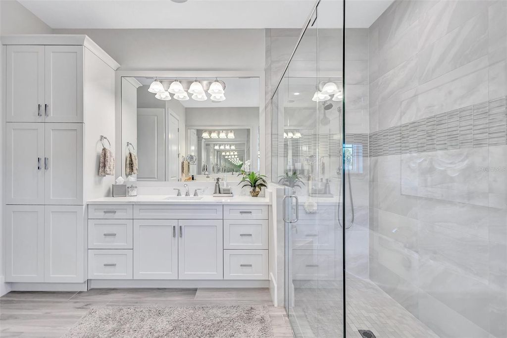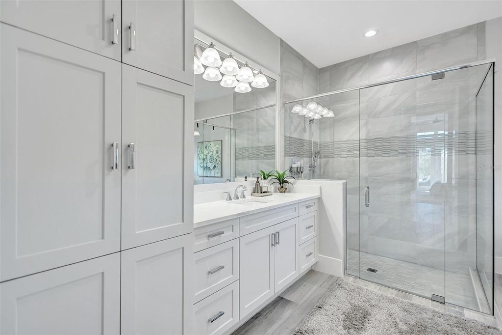 Experience refined Florida living in this beautifully appointed residence within the renowned Lake Club, where comfort, style, and thoughtful design come together in one of Lakewood Ranch’s most sought-after communities. Ideally positioned on a premium water-view homesite, this 2022-built home captures tranquil pond sunsets from its generously sized covered lanai, complete with an expansive, panoramic screened enclosure, finished ceilings, and a fully equipped summer kitchen. Spanning just under 3,000 square feet, the home features an open-concept great room enhanced by soaring ceilings and elegant porcelain plank tile flooring throughout the main living areas. The chef’s kitchen is both functional and stylish, complete with quartz countertops, soft-close cabinetry with pull-out shelving, and a suite of stainless steel appliances, including a gas cooktop and convection oven. Thoughtful enhancements include professionally installed landscape lighting in both the front and rear of the home, as well as a custom outdoor kitchen and smart home upgrades, including a fully automated AV system. Additional interior features include impact-rated windows and doors and upgraded lighting throughout, creating a polished, move-in-ready environment. The spacious primary suite offers a relaxing retreat with a spa-inspired bathroom featuring dual vanities, a walk-in shower, and a freestanding soaking tub. Step outside to your own private outdoor oasis, highlighted by a heated saltwater pool and spa, a generously sized covered lanai with finished ceilings, and a fully equipped summer kitchen—perfect for entertaining or simply enjoying the serene water views. The three-car garage offers ample space and functionality, featuring epoxy flooring and added conveniences such as whole-home surge protection. Located within the gated community of The Lake Club, residents enjoy access to exceptional amenities and are just minutes from Waterside Place, UTC, Main Street Lakewood Ranch, and the area’s renowned Gulf Coast beaches. Situated in an X flood zone, this home offers both peace of mind and an elevated lifestyle in one of the region’s premier locations. Schedule your private showing today and discover all that this exceptional property has to offer.
