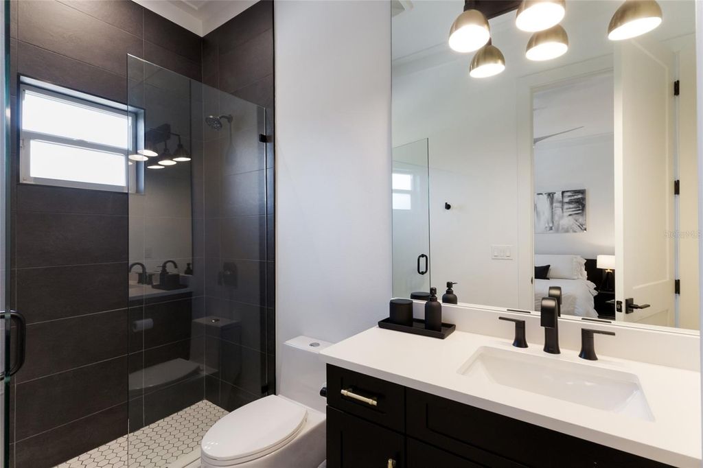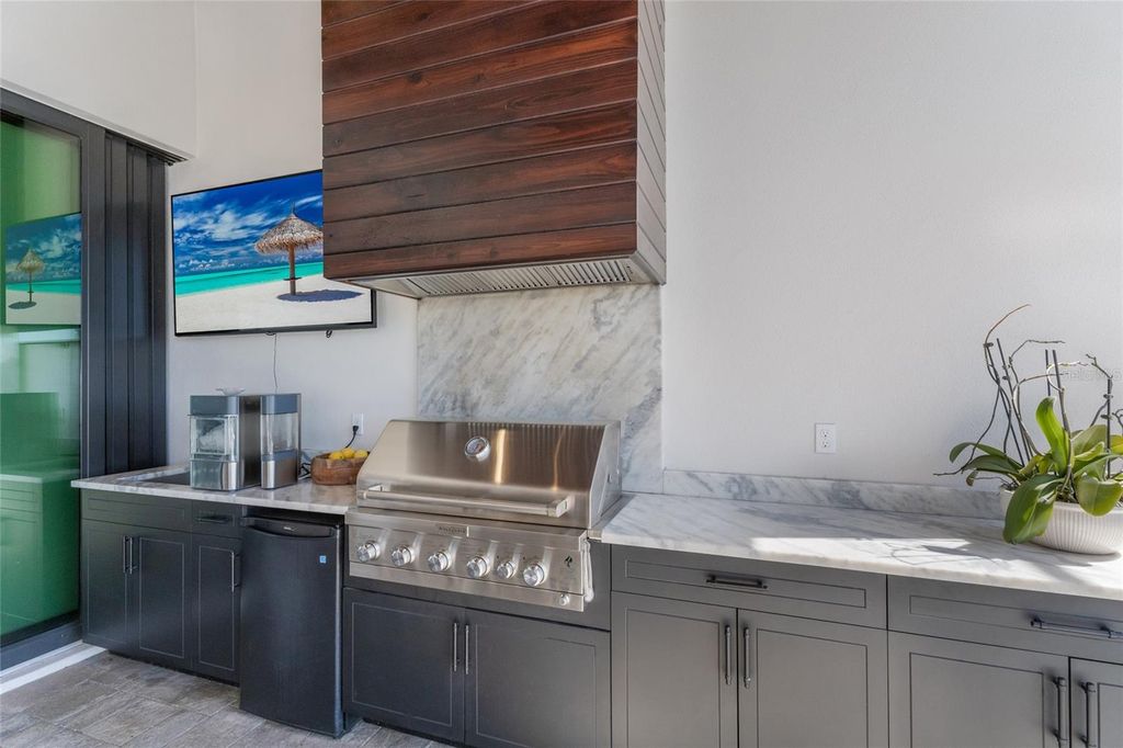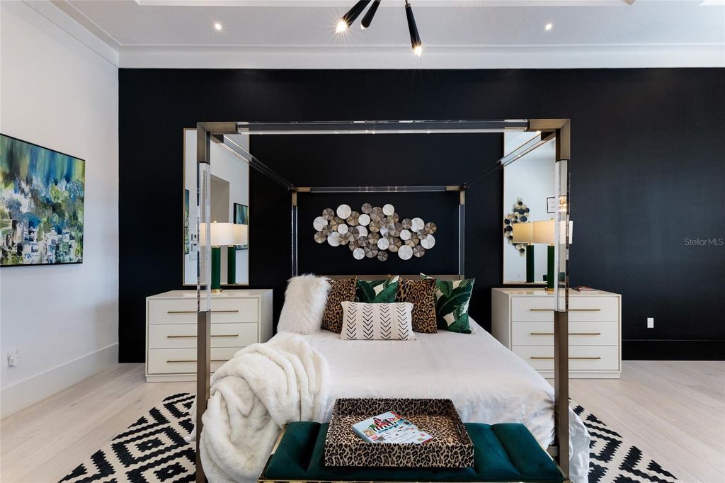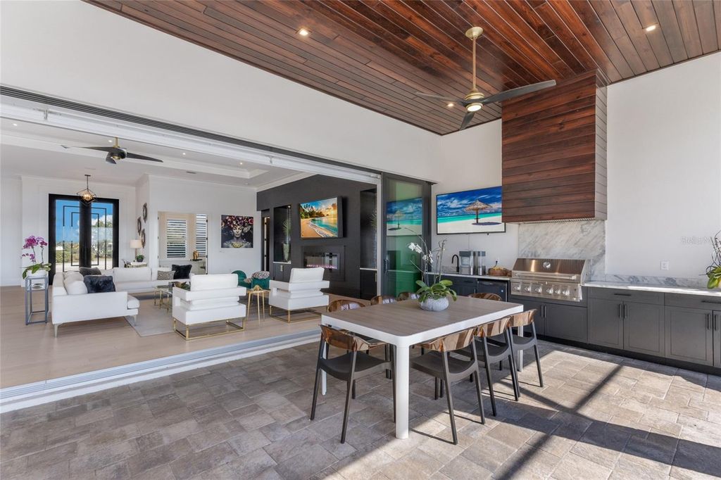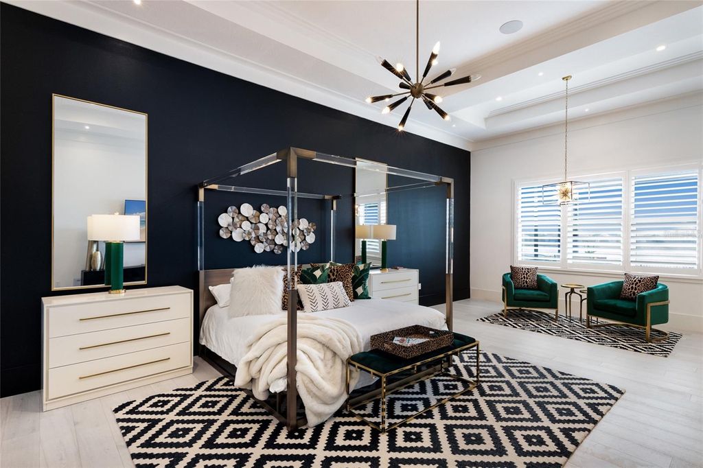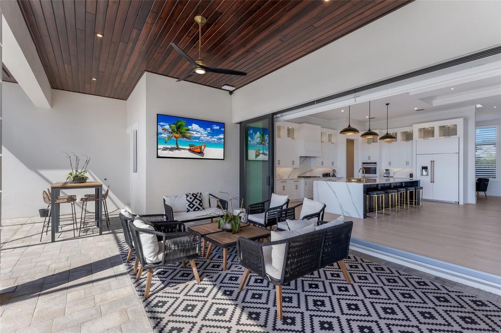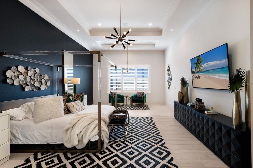 A stately arrival sets the tone for this exceptional custom residence, thoughtfully positioned on over one acre within the gates of The Concession. Blending modern luxury with architectural refinement, the home offers a rare combination of privacy, elegance, and timeless design in one of Lakewood Ranch’s most exclusive communities. Custom double entry doors welcome you into a light-filled interior where engineered hardwood floors anchor the main living spaces and a dramatic wall of sliding glass doors frame serene water views, seamlessly connecting indoor and outdoor living. At the heart of the residence, the chef’s kitchen is both polished and highly functional, appointed with Monogram and Café appliances and anchored by a generous statement quartz island that serves as both focal point and gathering space. Designed to flow effortlessly into the great room and outdoor living areas, the layout supports both elevated entertaining and comfortable everyday living. Architectural elements define the great room, where a custom-designed accent wall showcases intricate detailing, a sleek linear fireplace, and an oversized mounted television, creating a striking focal point that balances warmth with modern design. Tray ceilings throughout further enhance the home’s architectural character, while curated designer lighting, plantation shutters, and a newly installed outdoor surround sound system underscore the thoughtfully executed craftsmanship. The primary suite offers a private retreat of generous proportions, complete with a sitting area and dual custom walk-in closets. The spa-inspired bath features expansive dual vanities, a soaking tub, and a dramatic walk-through shower with triple shower heads, including an overhead rain feature delivering a resort-caliber experience. Two additional guest suites each offer beautifully appointed en-suite baths with elevated design selections tailored for today’s discerning buyer. A private office with oversized windows invites abundant natural light, while the formal dining room is enhanced by a dramatic wine display that serves as a striking focal point for elegant entertaining. A spacious bonus room provides flexible space for recreation, media, or additional guest accommodations. Outdoors, the experience continues with a large pool and spa, expansive covered lanai, and a nicely appointed outdoor kitchen, creating a true resort-style setting. The five-car garage provides exceptional capacity for the automotive enthusiast and additional storage needs, while a fenced yard allows for secure outdoor enjoyment. Constructed with hurricane impact doors and windows throughout and supported by a whole-house generator, the home offers peace of mind with uncompromising quality. This residence masterfully blends functionality with a refined, designer-forward aesthetic, delivering privacy, security, and elevated living. Located just minutes from UTC, Waterside dining and shopping, and the Gulf Coast’s renowned beaches, it offers proximity to everything while maintaining an atmosphere of serene exclusivity. A distinguished offering for those seeking elevated luxury and the true Concession lifestyle.