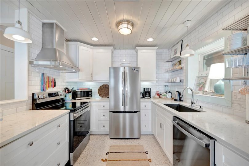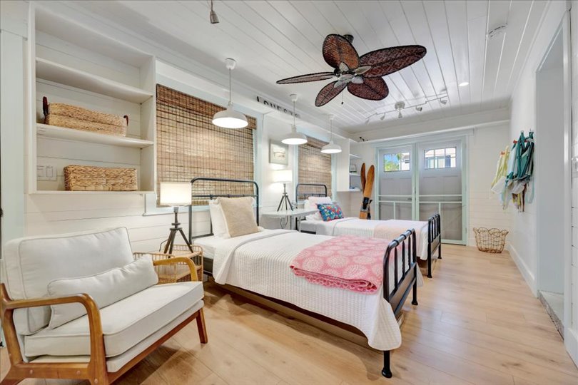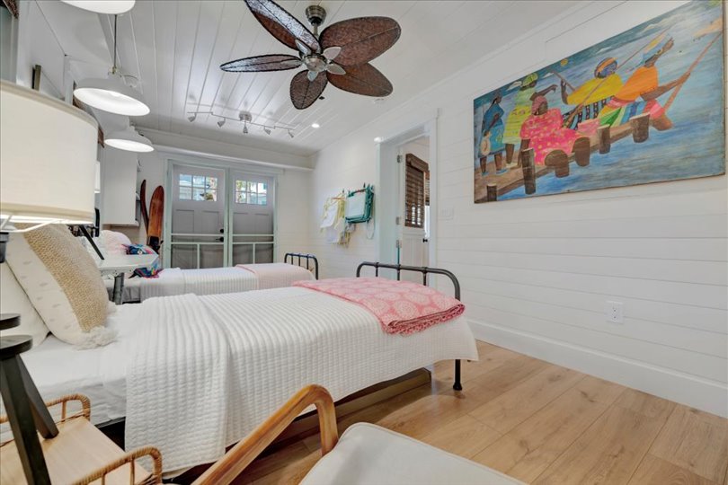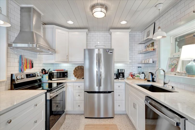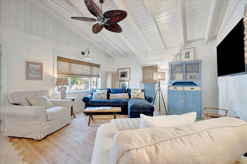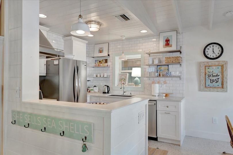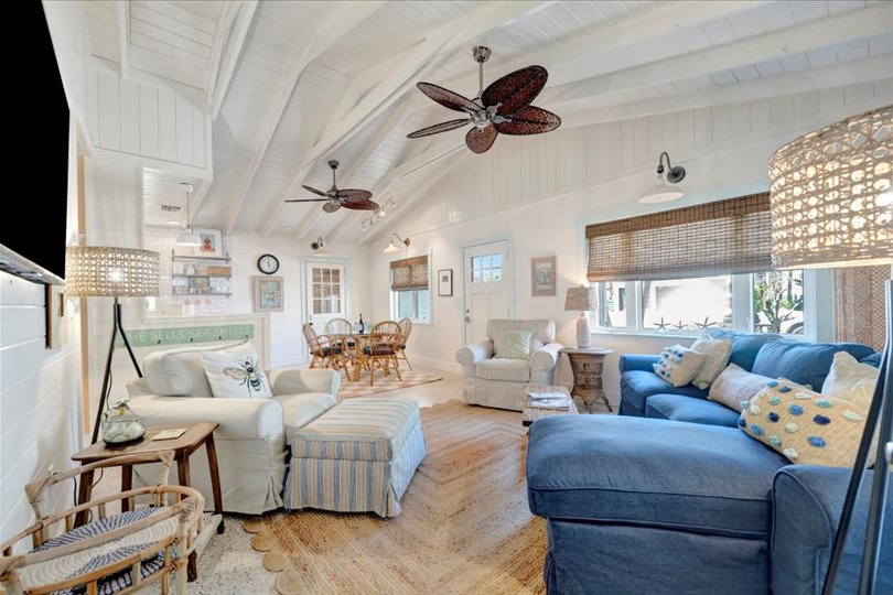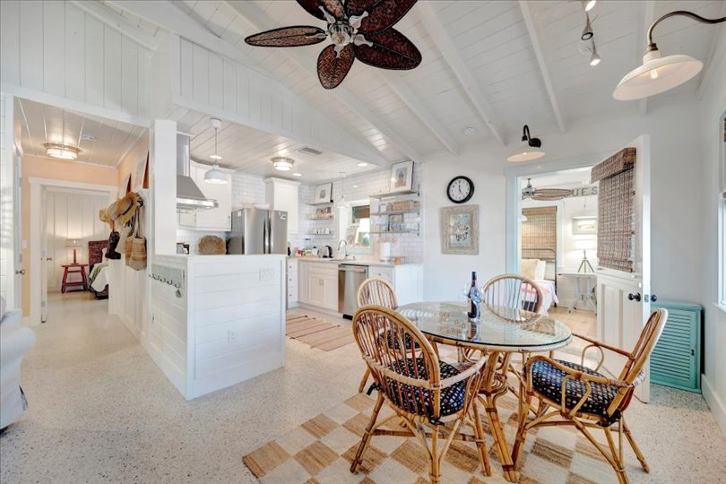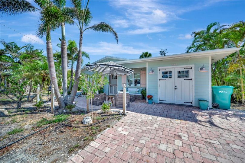 Under contract-accepting backup offers. Welcome to Barefoot Gypsy — a cozy Anna Maria Island cottage bursting with character and located directly across from Tampa Bay on the coveted north end of Anna Maria Island. Completely renovated after Hurricane Helene including NEW ROOF, NEW AC, all new cabinets, appliances, and furnishings, this charming coastal retreat combines timeless charm with modern upgrades. Updated with a professional re-design, the home features vaulted ceilings adorned with reclaimed wood planks from a historic Bean Point home. Gleaming original terrazzo floors flow throughout the cottage, adding authentic Florida charm. The kitchen is thoughtfully designed with quartz countertops, subway tile backsplash, custom built-ins, and brand-new stainless-steel appliances — perfect for casual beachside entertaining. The home offers two queen-sized bedrooms…one with an en-suite bathroom, and a spacious hall bath complete with separate tub and shower. An additional third bedroom was added in 2017 and features two twin beds along with a full-size washer/dryer and closet area. With its eclectic, beachy flair, this turnkey-furnished home (with some exclusions) is currently part of a successful rental program. There’s even room for a pool! Just bring your flip-flops and start living the island dream.